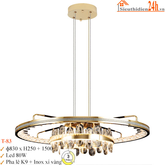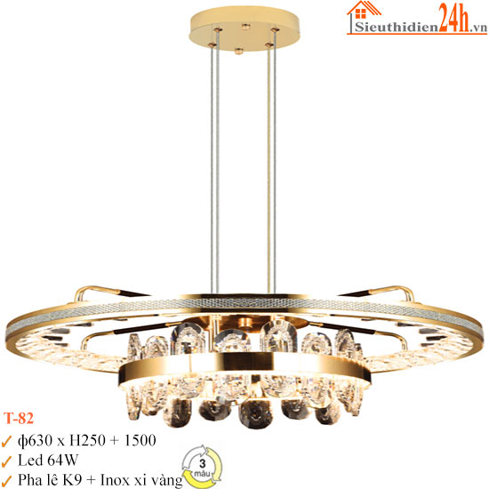 Đèn thả pha lê với thiết kế hình thái thời thượng, từng giọt pha lê tinh xảo tuyển chọn hòa quyện cùng ánh sáng lung linh, khung viền vàng thêm nét sang quý, tạo tâm điểm quyến rũ cho mọi không gian.