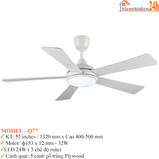 | Cánh quạt | 5 cánh gỗ Plywood |